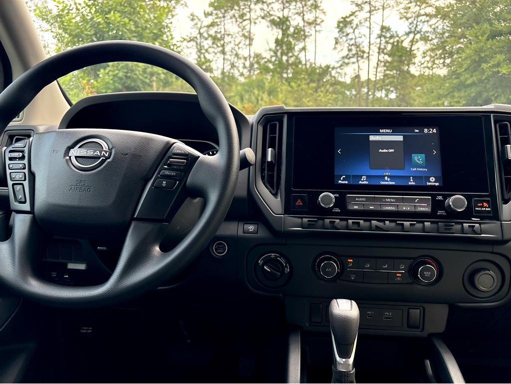 Vaden is pleased to offer 2025 Nissan Frontier S in Gun Metallic, Beautifully equipped with all the essentials and then some! 4WD, 16" Alloy Wheels, 3.692 Axle Ratio, 4 Speakers, 4-Wheel Disc Brakes, ABS brakes, Air Conditioning, Alloy wheels, Anti-whiplash front head restraints, Apple CarPlay/Android Auto, Auto High-beam Headlights, Blind Spot Warning, Brake assist, Bumpers: body-color, Carpeted Floor Mats, Cloth Seat Trim, Delay-off headlights, Driver door bin, Dual front impact airbags, Dual front side impact airbags, Electronic Stability Control, Emergency communication system, Front anti-roll bar, Front Bucket Seats, Front Center Armrest, Front reading lights, Front wheel independent suspension, Fully automatic headlights, Illuminated entry, Knee airbag, Low tire pressure warning, Occupant sensing airbag, Overhead airbag, Overhead console, Panic alarm, Passenger door bin, Power steering, Power windows, Radio data system, Radio: AM/FM/AUX/USB Audio System, Rear anti-roll bar, Rear side impact airbag, Rear step bumper, Remote keyless entry, Speed control, Speed-sensing steering, Splash Guards Accessory, Split folding rear seat, Steering wheel mounted audio controls, Tachometer, Telescoping steering wheel, Tilt steering wheel, Traction control, Trip computer, and Variably intermittent wipers. 4WD 9-Speed Automatic with Overdrive 3.8L DI DOHC 24V V6 4WD.