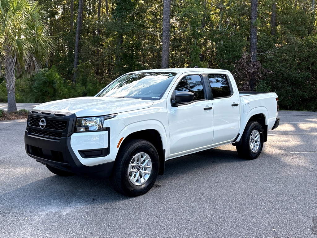 Vaden is pleased to offer 2025 Nissan Frontier S in Glacier White, Beautifully equipped with all the essentials and then some! 4WD, 16" Alloy Wheels, 3.692 Axle Ratio, 4 Speakers, 4-Wheel Disc Brakes, ABS brakes, Air Conditioning, Alloy wheels, Anti-whiplash front head restraints, Apple CarPlay/Android Auto, Auto High-beam Headlights, Blind Spot Warning, Brake assist, Bumpers: body-color, Carpeted Floor Mats, Cloth Seat Trim, Delay-off headlights, Driver door bin, Dual front impact airbags, Dual front side impact airbags, Electronic Stability Control, Emergency communication system, Front anti-roll bar, Front Bucket Seats, Front Center Armrest, Front reading lights, Front wheel independent suspension, Fully automatic headlights, Illuminated entry, Knee airbag, Low tire pressure warning, Occupant sensing airbag, Overhead airbag, Overhead console, Panic alarm, Passenger door bin, Power steering, Power windows, Radio data system, Radio: AM/FM/AUX/USB Audio System, Rear anti-roll bar, Rear side impact airbag, Rear step bumper, Remote keyless entry, Speed control, Speed-sensing steering, Splash Guards Accessory, Split folding rear seat, Steering wheel mounted audio controls, Tachometer, Telescoping steering wheel, Tilt steering wheel, Traction control, Trip computer, and Variably intermittent wipers. 4WD 9-Speed Automatic with Overdrive 3.8L DI DOHC 24V V6 4WD.