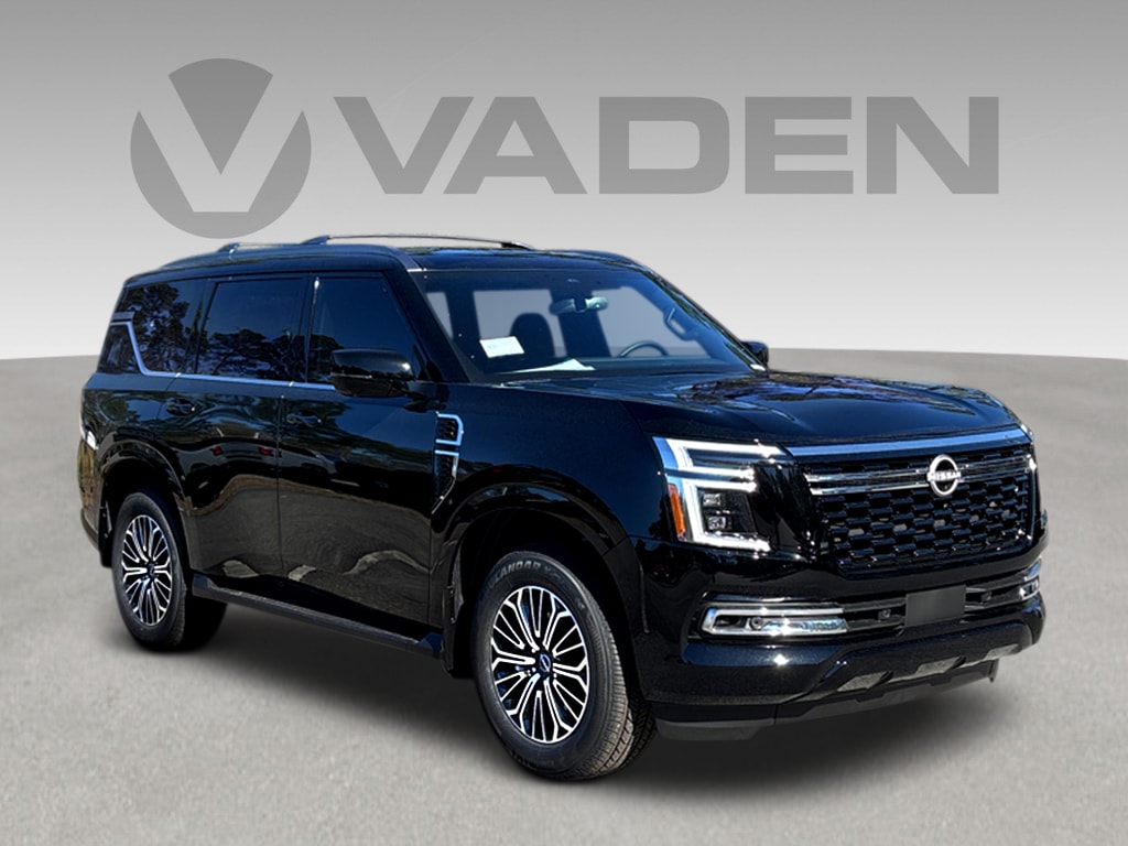 Vaden is pleased to offer 2026 Nissan Armada SL in Super Black, Beautifully equipped with all the essentials and then some! 12 Speakers, 3rd row seats: split-bench, 4-Wheel Disc Brakes, ABS brakes, Air Conditioning, Alloy wheels, AM/FM radio: SiriusXM w/360L, Anti-whiplash front head restraints, Apple CarPlay/Android Auto, Auto High-beam Headlights, Auto tilt-away steering wheel, Auto-dimming door mirrors, Auto-dimming Rear-View mirror, Auto-leveling suspension, Automatic temperature control, Brake assist, Bumpers: body-color, Carpeted Floor Mats with Bench Seat, Center Front Spoiler, Compass, Cross Bars, Delay-off headlights, Driver door bin, Driver vanity mirror, Dual front impact airbags, Dual front side impact airbags, Electronic Stability Control, Emergency communication system: NissanConnect Services, Four wheel independent suspension, Front anti-roll bar, Front Bucket Seats, Front Center Armrest, Front dual zone A/C, Front reading lights, Fully automatic headlights, Garage door transmitter: myQ Connected Garage, Genuine wood dashboard insert, Heated door mirrors, Heated Front Bucket Seats, Heated front seats, Heated steering wheel, HVAC memory, Illuminated entry, Knee airbag, Leather steering wheel, Low tire pressure warning, Memory seat, Navigation system: Google Maps, Occupant sensing airbag, Outside temperature display, Overhead airbag, Overhead console, Panic alarm, Passenger door bin, Passenger vanity mirror, Power door mirrors, Power driver seat, Power Liftgate, Power passenger seat, Power steering, Power windows, Radio: NissanConnect with SiriusXM 360L, Rain sensing wipers, Rear air conditioning, Rear anti-roll bar, Rear Bumper Protector, Rear reading lights, Rear seat center armrest, Rear window defroster, Rear window wiper, Reclining 3rd row seat, Remote keyless entry, Security system, Speed control, Speed-sensing steering, Speed-Sensitive Wipers, Splash Guards, Split folding rear seat, Spoiler, Steering wheel memory, Steering wheel mounted audio controls, Tachometer, TailorFit Seat Trim, Telescoping steering wheel, Tilt steering wheel, Traction control, Trip computer, Turn signal indicator mirrors, Variably intermittent wipers, Voltmeter, and Wheels: 20" x 8.5J Machined and Painted Alloy.