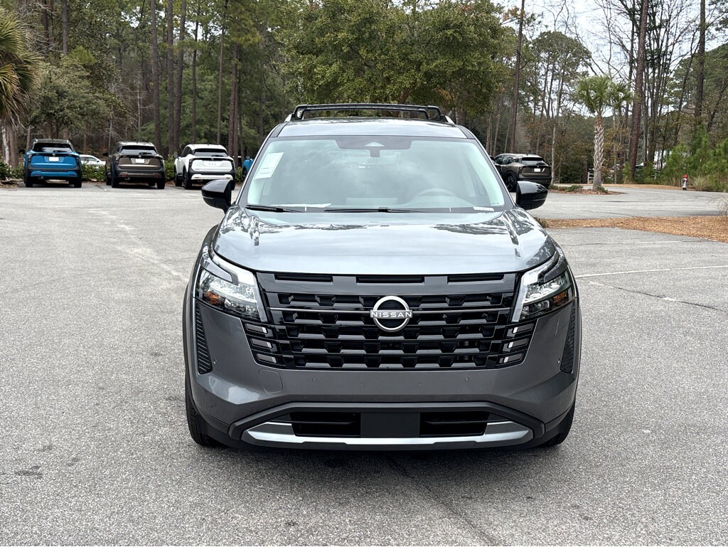 Vaden is pleased to offer 2026 Nissan Pathfinder SL in Gun Metallic, Beautifully equipped with all the essentials and then some! 18" Machined Alloy Wheels, 3rd row seats: bench, 4-Piece Black Splash Guards, 4-Wheel Disc Brakes, 6 Speakers, ABS brakes, Air Conditioning, Alloy wheels, AM/FM radio: SiriusXM w/360L, Auto High-beam Headlights, Auto-dimming Rear-View mirror, Automatic temperature control, Bench Seat Carpeted Floor Mats, Brake assist, Bumpers: body-color, Cross Bars, Delay-off headlights, Driver door bin, Driver vanity mirror, Dual front impact airbags, Dual front side impact airbags, Electronic Stability Control, Emergency communication system: NissanConnect Services, Four wheel independent suspension, Front anti-roll bar, Front Bucket Seats, Front Center Armrest, Front dual zone A/C, Front reading lights, Fully automatic headlights, Garage door transmitter: HomeLink, Heated door mirrors, Heated Front Bucket Seats, Heated front seats, Heated steering wheel, Illuminated entry, Knee airbag, Low tire pressure warning, NissanConnect featuring Apple CarPlay and Android Auto, Occupant sensing airbag, Outside temperature display, Overhead airbag, Overhead console, Panic alarm, Passenger door bin, Passenger vanity mirror, Power door mirrors, Power driver seat, Power Liftgate, Power steering, Power windows, Radio data system, Radio: AM/FM Audio System with NissanConnect, Rear air conditioning, Rear anti-roll bar, Rear reading lights, Rear seat center armrest, Rear side impact airbag, Rear window defroster, Rear window wiper, Reclining 3rd row seat, Remote keyless entry, Security system, Speed control, Speed-sensing steering, Split folding rear seat, Spoiler, Steering wheel mounted audio controls, Tachometer, TailorFit Appointed Seating Surfaces, Telescoping steering wheel, Tilt steering wheel, Traction control, Trip computer, Turn signal indicator mirrors, and Variably intermittent wipers.