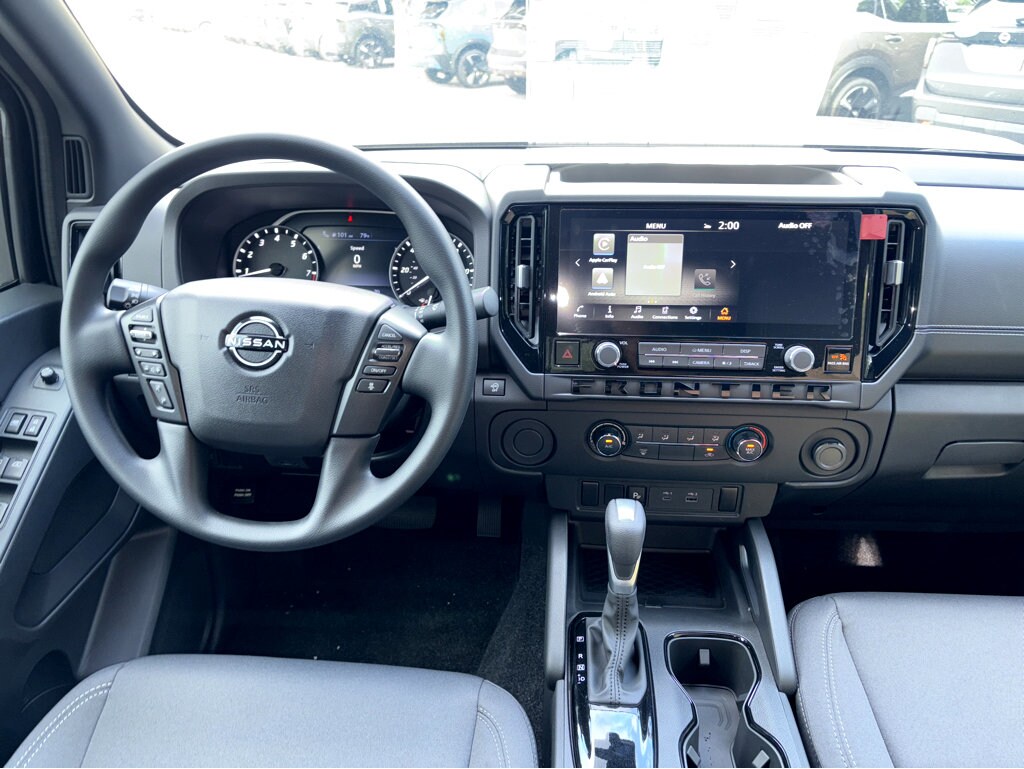 Vaden is pleased to offer 2026 Nissan Frontier SV in Gun Metallic, Beautifully equipped with all the essentials and then some! Dark Armor Package (Dark FRONTIER Tailgate Lettering, Dark Grill Surround/Mesh/Inner Fascia, Dark Mirror Caps, and Wheels: 17" Dark), Tow Package, 17" Alloy Wheels, 3.692 Axle Ratio, 4-Wheel Disc Brakes, 6 Speakers, ABS brakes, Air Conditioning, Alloy wheels, AM/FM radio: SiriusXM, Anti-whiplash front head restraints, Auto High-beam Headlights, Blind Spot Warning, Brake assist, Bumpers: body-color, Carpeted Floor Mats, Delay-off headlights, Driver door bin, Driver vanity mirror, Drop-In Bed Liner & Bumper Step, Dual front impact airbags, Dual front side impact airbags, Electronic Stability Control, Emergency communication system, Front anti-roll bar, Front Bucket Seats, Front Center Armrest, Front reading lights, Front wheel independent suspension, Fully automatic headlights, Illuminated entry, Knee airbag, Low tire pressure warning, Occupant sensing airbag, Overhead airbag, Overhead console, Panic alarm, Passenger door bin, Passenger vanity mirror, Power door mirrors, Power driver seat, Power steering, Power windows, Premium Cloth Seat Trim, Radio data system, Radio: SXM/AM/FM/AUX/USB Audio System, Rear anti-roll bar, Rear seat center armrest, Rear side impact airbag, Rear step bumper, Remote keyless entry, Security system, Speed control, Speed-sensing steering, Splash Guards, Split folding rear seat, Steering wheel mounted audio controls, Tachometer, Telescoping steering wheel, Tilt steering wheel, Tow/Haul Mode Switch, Traction control, Trip computer, Variably intermittent wipers, Voltmeter, and Wireless Apple CarPlay/Wireless Android Auto.