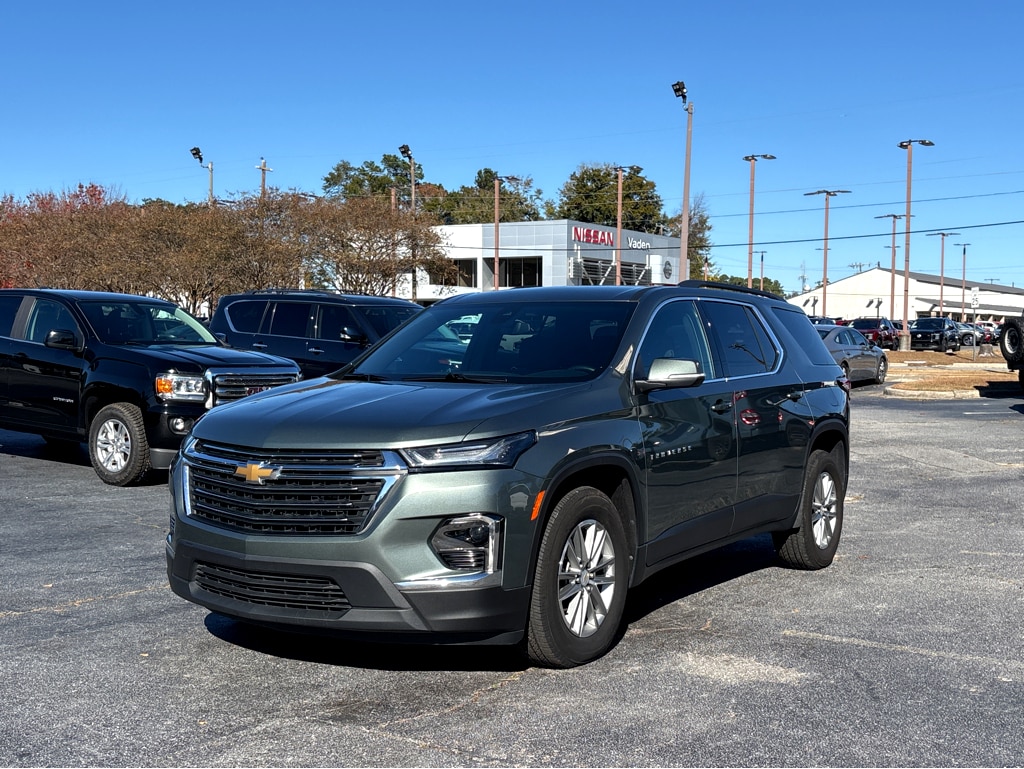 Vaden is pleased to offer this Silver Sage Metallic 2023 Chevrolet Traverse LT with Jet Black Cloth... Beautifully equipped with Convenience & Driver Confidence Package (4.2" Multi-Color Enhanced Driver Instrument Display, Heated Driver & Front Passenger Seats, Radio: Chevrolet Infotainment 3 Plus System, Rear Power Liftgate, Remote Start, SiriusXM w/360L, and Universal Home Remote), Preferred Equipment Group 1LT, 2-Way Manual Front Passenger Seat Adjuster, 3.49 Axle Ratio, 3rd row seats: split-bench, 4-Wheel Disc Brakes, 6 Speakers, 6-Speaker Audio System Feature, 8-Way Power Driver Seat Adjuster, ABS brakes, Air Conditioning, Alloy wheels, AM/FM radio: SiriusXM, Apple CarPlay/Android Auto, Auto High-beam Headlights, Automatic temperature control, Black Roof Rails, Brake assist, Bumpers: body-color, Compass, Delay-off headlights, Driver door bin, Driver vanity mirror, Dual front impact airbags, Dual front side impact airbags, Electronic Stability Control, Emergency communication system, Exterior Parking Camera Rear, Four wheel independent suspension, Front anti-roll bar, Front Bucket Seats, Front Center Armrest, Front dual zone A/C, Front reading lights, Fully automatic headlights, Heated door mirrors, Illuminated entry, Leather steering wheel, Low tire pressure warning, Not Equipped w/Rear Park Assist (060), Occupant sensing airbag, Outside temperature display, Overhead airbag, Overhead console, Panic alarm, Passenger door bin, Passenger vanity mirror, Power door mirrors, Power Driver Lumbar Control, Power driver seat, Power steering, Power windows, Premium Cloth Seat Trim, Radio data system, Radio: Chevrolet Infotainment System AM/FM Stereo, Rear air conditioning, Rear anti-roll bar, Rear reading lights, Rear window defroster, Rear window wiper, Remote keyless entry, Security system, SiriusXM Radio, Speed control, Speed-sensing steering, Spoiler, Steering wheel mounted audio controls, Tachometer, Telescoping steering wheel, Tilt steering wheel, Traction control, Trip computer, Turn signal indicator mirrors, Variably intermittent wipers, Voltmeter, and Wheels: 18" Bright Silver-Painted Aluminum! REMAINDER OF FACTORY WARRANTY, CLEAN CARFAX HISTORY, PUSH BUTTON STARTER, REMOTE KEYLESS ENTRY, BLUETOOTH, REMOTE START, BACKUP CAMERA, POWER MIRROR PACKAGE, 3RD ROW SEATING, PREMIUM WHEELS, 4.2" Multi-Color Enhanced Driver Instrument Display, Convenience & Driver Confidence Package, Heated Driver & Front Passenger Seats, Preferred Equipment Group 1LT, Radio: Chevrolet Infotainment 3 Plus System, Rear Power Liftgate, Remote Start, SiriusXM w/360L, Universal Home Remote.