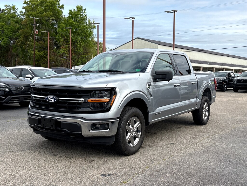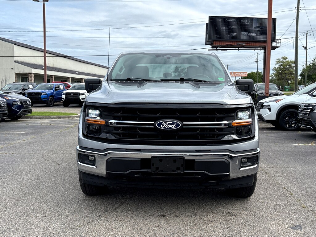 Vaden is pleased to offer this Silver Metallic 2024 Ford F-150 XLT with Black W/Medium Dark Slate Cloth... Beautifully equipped with Equipment Group 301A Standard, Mobile Office Package (Cloth 40/Console/40 Front Seats, Console Worksurface, and Partitioned Lockable Rear Storage), 3.5L PowerBoost Full-Hybrid V6, 4WD, Navigation system: Connected Navigation, 3.31 Axle Ratio, 4-Wheel Disc Brakes, 6 Speakers, ABS brakes, Air Conditioning, Alloy wheels, AM/FM radio: SiriusXM with 360L, Auto High-beam Headlights, Auto-dimming Rear-View mirror, Automatic temperature control, Brake assist, Bumpers: chrome, Chrome wheels, Cloth 40/20/40 Front Seat, Compass, Delay-off headlights, Driver door bin, Driver vanity mirror, Dual front impact airbags, Dual front side impact airbags, Electronic Locking w/3.73 Axle Ratio, Electronic Stability Control, Emergency communication system: SYNC 4 911 Assist, Front anti-roll bar, Front Center Armrest w/Storage, Front dual zone A/C, Front fog lights, Front reading lights, Front wheel independent suspension, Fully automatic headlights, Heated door mirrors, Illuminated entry, Low tire pressure warning, Occupant sensing airbag, Outside temperature display, Overhead airbag, Overhead console, Panic alarm, Passenger door bin, Passenger vanity mirror, Power door mirrors, Power driver seat, Power steering, Power windows, Radio data system, Radio: AM/FM SiriusXM w/360L, Rear reading lights, Rear step bumper, Rear window defroster, Remote keyless entry, Security system, Speed control, Split folding rear seat, Steering wheel mounted audio controls, SYNC 4 w/Enhanced Voice Recognition, Tachometer, Telescoping steering wheel, Tilt steering wheel, Traction control, Trip computer, Variably intermittent wipers, Voltmeter, and Wheels: 18" Chrome-Like PVD! ONE OWNER, CLEAN CARFAX HISTORY, REMOTE KEYLESS ENTRY, BLUETOOTH, BACKUP CAMERA, SOUND PACKAGE - SIRIUS XM SATELLITE RADIO, POWER MIRROR PACKAGE, TOW PACKAGE TRAILER PACKAGE, AWD/4X4/FOUR WHEEL DRIVE, PREMIUM WHEELS, 3.5L PowerBoost Full-Hybrid V6, 4WD, Cloth 40/Console/40 Front Seats, Console Worksurface, Equipment Group 301A Standard, Mobile Office Package, Navigation system: Connected Navigation, Partitioned Lockable Rear Storage.