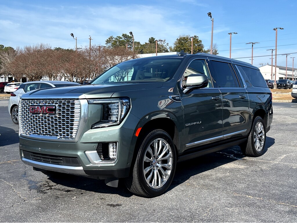 Vaden is pleased to offer this Frosted Pine Metallic 2024 GMC Yukon XL Denali with Teak/Light Shale Leather... Beautifully equipped with Advanced Security Package (Glass Breakage Sensor, Theft-Deterrent Alarm System, Vehicle Inclination Sensor, and Vehicle Interior Movement Sensor), Advanced Technology Package (Enhanced Automatic Parking Assist, Inside Rearview Auto-Dimming Rear Camera Mirror, Rear Camera Mirror Washer, Reverse Automatic Braking, and Super Cruise), Denali Reserve Package (Dual-Pane Panoramic Power Sunroof, Power-Retractable Assist Steps, Wheel Locks (Set of 4) (LPO), and Wheels: 22" x 9" Bright Machined Aluminum), Enhanced Trailering Technology Package (Trailer Camera Provisions, Trailering Assist Guidelines, and Wired Auxiliary Trailer Camera (LPO)), Max Trailering Package, Preferred Equipment Group 5SA (12-Way Power Seat Adjusters, 15" Diagonal Multi-Color Head-Up Display, 2 Presets For Outside Rearview Mirrors, 3rd Row 60/40 Power-Folding Split-Bench Seat, Adaptive Cruise Control, Bose 14-Speaker Surround w/CenterPoint, Bright Front & Rear Door Sill Plates, Chrome Door Handles w/Body-Color Strip, Dual Exhaust System, Enhanced Automatic Emergency Braking, Floor Console, Galvano Bodyside Moldings, Hands-Free Power Programmable Rear Liftgate, HD Surround Vision, Heated 2nd Row Outboard Position Seats, Heated Driver & Front Passenger Seats, Heated Steering Wheel, Hill Descent Control, Inside Rear-View Auto-Dimming Mirror, Outside Heated Power-Adjustable Mirrors, Perforated Heated & Ventilated Dr & Frt Pass Seats, Power Release 2nd Row Bucket Seats, Power Tilt & Telescopic Steering Column, Rear Pedestrian Alert, Safety Alert Seat, Universal Home Remote, and Wireless Charging), 4WD, Navigation System, 14 Speakers, 3.23 Rear Axle Ratio, 3rd row seats: split-bench, 4-Wheel Disc Brakes, ABS brakes, Adaptive suspension, Air Conditioning, Alloy wheels, AM/FM radio: SiriusXM with 360L, AM/FM Stereo, Apple CarPlay/Android Auto, Auto High-beam Headlights, Auto-dimming door mirrors, Auto-dimming Rear-View mirror, Auto-leveling suspension, Automatic Emergency Braking, Automatic temperature control, Bodyside moldings, Brake assist, Bumpers: body-color, Compass, Delay-off headlights, Driver door bin, Driver vanity mirror, Dual front impact airbags, Dual front side impact airbags, Electronic Stability Control, Emergency communication system: OnStar and GMC connected services capable, Extra Capacity Cooling System, Following Distance Indicator, Forward Collision Alert, Four wheel independent suspension, Front & Rear Park Assist, Front anti-roll bar, Front Bucket Seats, Front Center Armrest, Front dual zone A/C, Front fog lights, Front Pedestrian Braking, Front reading lights, Fully automatic headlights, Garage door transmitter, Heads-Up Display, Heated door mirrors, Heated front seats, Heated rear seats, Heated steering wheel, Hitch View, Illuminated entry, Integrated Trailer Brake Controller, IntelliBeam Automatic High Beam On/Off, Lane Change Alert w/Side Blind Zone Alert, Lane Keep Assist w/Lane Departure Warning, Low tire pressure warning, Magnetic Ride Control Suspension, Memory seat, Occupant sensing airbag, Outside temperature display, Overhead airbag, Overhead console, Panic alarm, Passenger door bin, Passenger vanity mirror, Perforated Leather Seating Surfaces, Power door mirrors, Power driver seat, Power Liftgate, Power passenger seat, Power steering, Power windows, Rain sensing wipers, Rear air conditioning, Rear anti-roll bar, Rear Cross Traffic Alert, Rear reading lights, Rear Seat Media System, Rear window defroster, Rear window wiper, Remote keyless entry, Roof rack: rails only, Security system, SiriusXM w/360L, Smart Trailer Integration Indicator, Speed control, Speed-sensing steering, Split folding rear seat, Spoiler, Steering wheel memory, Steering wheel mounted audio controls, Tachometer, Telescoping steering whe