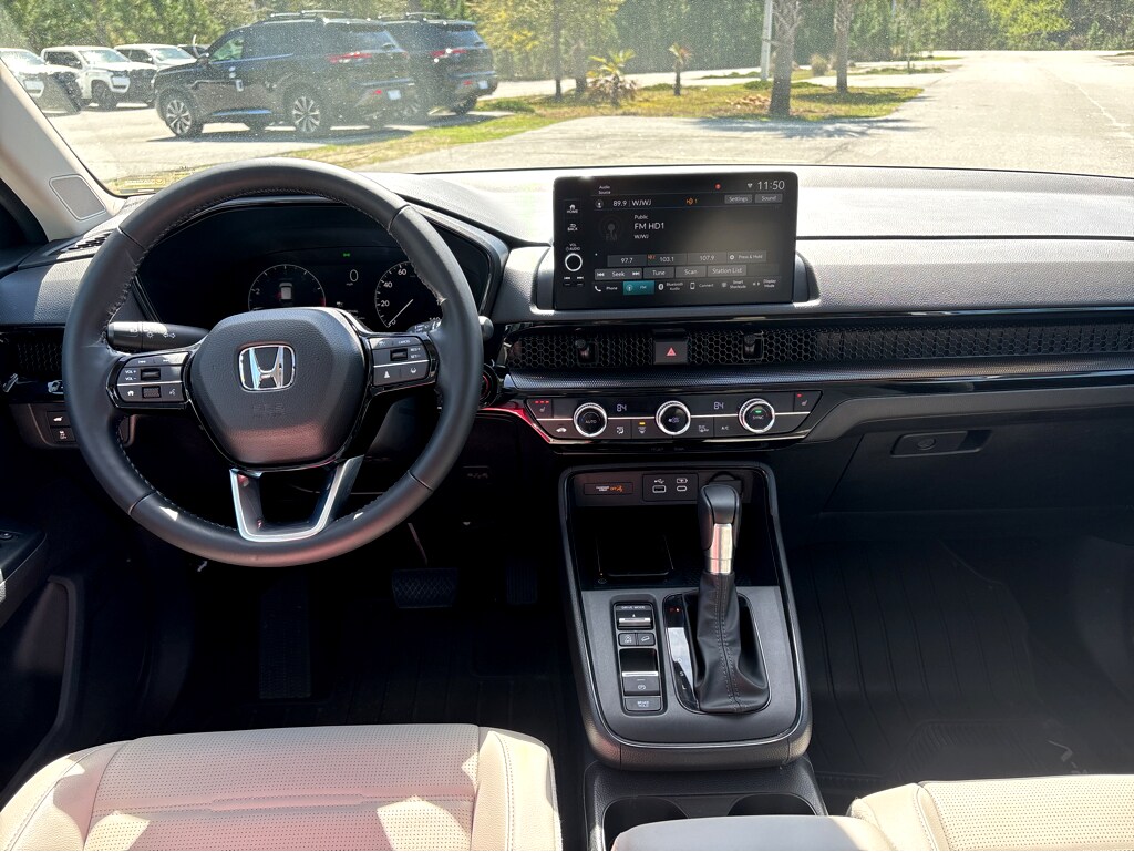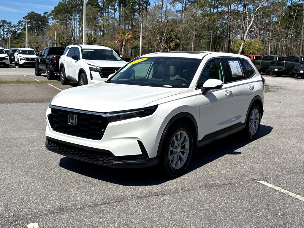 Vaden is pleased to offer 2025 Honda CR-V EX-L in White, Beautifully equipped with all the essentials and then some! 4-Wheel Disc Brakes, 8 Speakers, ABS brakes, Adaptive Cruise Control: Adaptive Cruise Control (ACC) with Low-Speed Follow, Air Conditioning, Alloy wheels, AM/FM radio: SiriusXM, Auto High-beam Headlights, Auto-dimming Rear-View mirror, Automatic temperature control, Blind Spot Information (BSI) System warning, Brake assist, Bumpers: body-color, Compass, Delay-off headlights, Driver door bin, Driver vanity mirror, Dual front impact airbags, Dual front side impact airbags, Electronic Stability Control, Exterior Parking Camera Rear, Four wheel independent suspension, Front anti-roll bar, Front Bucket Seats, Front Center Armrest, Front dual zone A/C, Front reading lights, Fully automatic headlights, Heated door mirrors, Heated Front Bucket Seats, Heated front seats, Illuminated entry, Knee airbag, Leather Seat Trim, Leather Shift Knob, Leather steering wheel, Low tire pressure warning, Memory seat, Occupant sensing airbag, Outside temperature display, Overhead airbag, Overhead console, Panic alarm, Passenger door bin, Passenger vanity mirror, Power door mirrors, Power driver seat, Power Liftgate, Power moonroof, Power passenger seat, Power steering, Power windows, Radio data system, Radio: 320-Watt AM/FM/HD/SiriusXM Audio System, Rear anti-roll bar, Rear reading lights, Rear seat center armrest, Rear side impact airbag, Rear window defroster, Rear window wiper, Remote keyless entry, Security system, Speed control, Speed-sensing steering, Speed-Sensitive Wipers, Split folding rear seat, Spoiler, Steering wheel mounted audio controls, Tachometer, Telescoping steering wheel, Tilt steering wheel, Traction control, Trip computer, Turn signal indicator mirrors, Variably intermittent wipers, and Wheels: 18" Sparkle Silver Alloy Metallic.