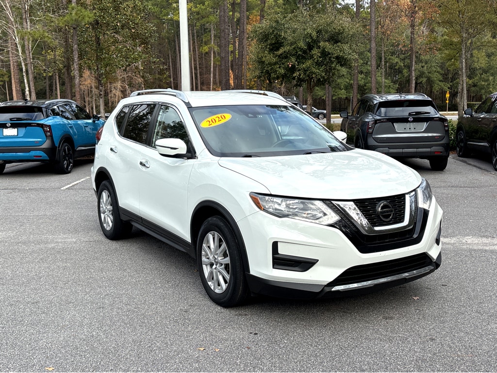 Vaden is pleased to offer 2020 Nissan Rogue SV in Glacier White, Beautifully equipped with all the essentials and then some! 17" Aluminum Alloy Wheels, 4-Wheel Disc Brakes, 6 Speakers, 6.386 Axle Ratio, ABS brakes, Air Conditioning, Alloy wheels, AM/FM radio: SiriusXM, Anti-whiplash front head restraints, Auto High-beam Headlights, Automatic temperature control, Blind Spot Warning, Brake assist, Bumpers: body-color, CD player, Cloth Seat Trim, Delay-off headlights, Driver door bin, Driver vanity mirror, Dual front impact airbags, Dual front side impact airbags, Electronic Stability Control, First Aid Kit, Floor Mats & 2-PC Cargo Area Protector, Four wheel independent suspension, Front anti-roll bar, Front Bucket Seats, Front Center Armrest w/Storage, Front dual zone A/C, Front reading lights, Fully automatic headlights, Heated door mirrors, Heated Front Bucket Seats, Heated front seats, Illuminated entry, Lane Departure Warning System, Leather Shift Knob, Low tire pressure warning, NissanConnect featuring Apple CarPlay and Android Auto, Occupant sensing airbag, Outside temperature display, Overhead airbag, Overhead console, Panic alarm, Passenger door bin, Passenger vanity mirror, Power door mirrors, Power driver seat, Power Liftgate, Power steering, Power windows, Radio data system, Radio: AM/FM/CD/AUX, Rear anti-roll bar, Rear Parking Sensors, Rear seat center armrest, Rear window defroster, Rear window wiper, Remote keyless entry, Roof rack: rails only, Security system, Speed control, Speed-sensing steering, Split folding rear seat, Spoiler, Steering wheel mounted audio controls, Tachometer, Telescoping steering wheel, Tilt steering wheel, Traction control, Trip computer, Turn signal indicator mirrors, and Variably intermittent wipers. CLEAN CARFAX HISTORY, BLUETOOTH, BACKUP CAMERA, SOUND PACKAGE - SIRIUS XM SATELLITE RADIO, PREMIUM WHEELS.