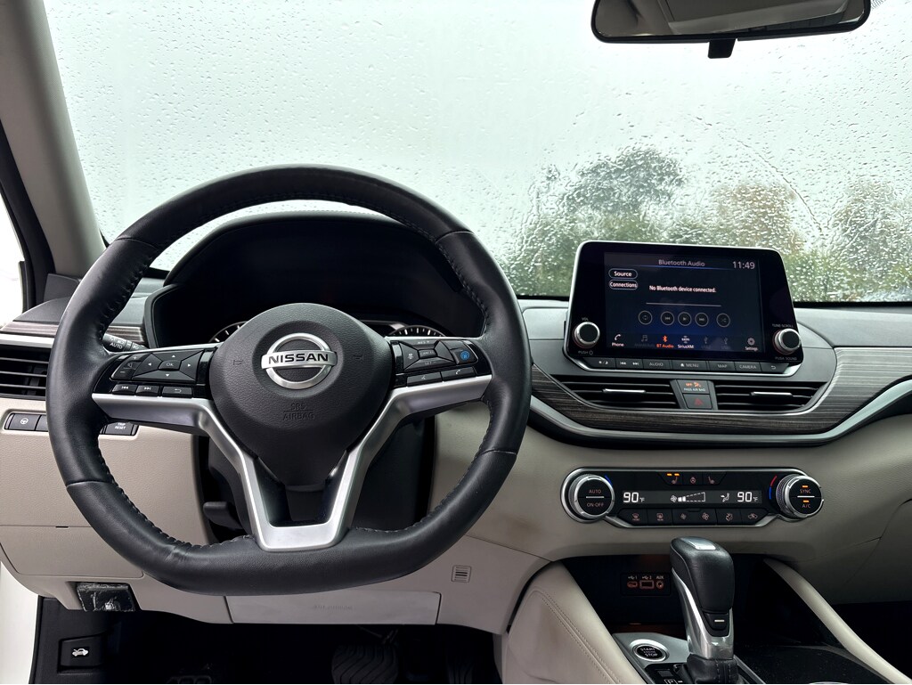 Vaden is pleased to offer this Pearl White Tricoat 2021 Nissan Altima 2.5 SL with Light Gray Leather... Beautifully equipped with CVT with Xtronic, Navigation System, 17" Alloy Wheels, 4-Wheel Disc Brakes, 9 Speakers, ABS brakes, Air Conditioning, Alloy wheels, AM/FM radio, Auto High-beam Headlights, Automatic temperature control, Blind Spot Warning, Body-Colored Splash Guards, Brake assist, Bumpers: body-color, Chrome Bumper Protector, Delay-off headlights, Driver door bin, Driver vanity mirror, Dual front impact airbags, Dual front side impact airbags, Electronic Stability Control, Emergency communication system: NissanConnect Services, Floor Mats/Trunk Mat/Hideaway Net, Four wheel independent suspension, Front anti-roll bar, Front Bucket Seats, Front Center Armrest, Front dual zone A/C, Front fog lights, Front reading lights, Fully automatic headlights, Heated door mirrors, Heated Front Bucket Seats, Heated front seats, Heated steering wheel, Illuminated entry, Illuminated Kick Plates, Knee airbag, Leather Shift Knob, Leather-Appointed Seat Trim, Low tire pressure warning, NissanConnect featuring Apple CarPlay and Android Auto, Occupant sensing airbag, Outside temperature display, Overhead airbag, Overhead console, Panic alarm, Passenger door bin, Passenger vanity mirror, Power door mirrors, Power driver seat, Power moonroof, Power passenger seat, Power steering, Power windows, Radio data system, Radio: AM/FM w/Bose Premium Sound System, Rear anti-roll bar, Rear Parking Sensors, Rear reading lights, Rear seat center armrest, Rear side impact airbag, Rear window defroster, Remote keyless entry, Security system, Speed control, Speed-sensing steering, Speed-Sensitive Wipers, Split folding rear seat, Sport steering wheel, Steering wheel mounted audio controls, Tachometer, Telescoping steering wheel, Tilt steering wheel, Traction control, Trip computer, Trunk Organizer Tray, Turn signal indicator mirrors, and Variably intermittent wipers! REMAINDER OF FACTORY WARRANTY, PUSH BUTTON STARTER, REMOTE KEYLESS ENTRY, BLUETOOTH, REMOTE START, BACKUP CAMERA, NAVIGATION SYSTEM NAV GPS, SUNROOF/MOONROOF, LEATHER SEATS, BOSE HIGH END SOUND PACKAGE, POWER MIRROR PACKAGE, HEATED SEATS, PREMIUM WHEELS, CVT with Xtronic, Navigation System.