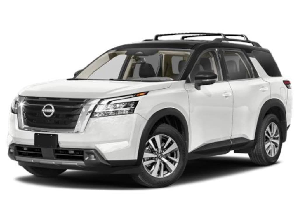 Vaden is pleased to offer this Pearl White Tricoat/Super Black 2023 Nissan Pathfinder SL with Charcoal Leather... Beautifully equipped with SL Premium Package (20" Painted Alloy Wheels, 2nd-Row Captain Chairs, 2nd-Row Removable Center Console, Bose Premium Audio System, Heated Rear Seats, and Tow Hitch Receiver & Harness), Tow Delete Package (Delete Tow Hitch Receiver & Harness), Navigation system: NissanConnect Navigation, 18" Machined Alloy Wheels, 3rd row seats: bench, 4-Wheel Disc Brakes, 6 Speakers, ABS brakes, Air Conditioning, Alloy wheels, AM/FM radio: SiriusXM, Auto High-beam Headlights, Auto-dimming Rear-View mirror, Automatic temperature control, Axle Ratio: 4.334, Black Splash Guards (Set of 4), Brake assist, Bumpers: body-color, Captain's Chairs Carpeted Floor Mats (Set of 4), Cross Bars, Delay-off headlights, Driver door bin, Driver vanity mirror, Dual front impact airbags, Dual front side impact airbags, Electronic Stability Control, Emergency communication system: NissanConnect Services, Exterior Parking Camera Rear, Four wheel independent suspension, Front anti-roll bar, Front Bucket Seats, Front Center Armrest, Front dual zone A/C, Front reading lights, Fully automatic headlights, Garage door transmitter: HomeLink, Heated door mirrors, Heated Front Bucket Seats, Heated front seats, Heated steering wheel, Illuminated entry, Knee airbag, Leather Seating Surfaces, Leather steering wheel, LED Fog Lamps, Low tire pressure warning, NissanConnect w/Navigation & Services, Occupant sensing airbag, Outside temperature display, Overhead airbag, Overhead console, Panic alarm, Passenger door bin, Passenger vanity mirror, Power door mirrors, Power driver seat, Power Liftgate, Power passenger seat, Power steering, Power windows, Radio data system, Radio: AM/FM Audio System, Rear air conditioning, Rear anti-roll bar, Rear reading lights, Rear seat center armrest, Rear side impact airbag, Rear window defroster, Rear window wiper, Reclining 3rd row seat, Remote keyless entry, Security system, Speed control, Speed-sensing steering, Split folding rear seat, Spoiler, Steering wheel mounted audio controls, Tachometer, Telescoping steering wheel, Tilt steering wheel, Traction control, Trip computer, Turn signal indicator mirrors, and Variably intermittent wipers! ONE OWNER, CLEAN CARFAX HISTORY, PUSH BUTTON STARTER, REMOTE KEYLESS ENTRY, BLUETOOTH, REMOTE START, BACKUP CAMERA, NAVIGATION SYSTEM NAV GPS, SUNROOF/MOONROOF, LEATHER SEATS, BOSE HIGH END SOUND PACKAGE, POWER MIRROR PACKAGE, MEMORY PACKAGE, CLIMATE PACKAGE, REAR CLIMATE PACKAGE, HEAT PACKAGE : HEATED SEATS, TOW PACKAGE TRAILER PACKAGE, 3RD ROW SEATING, HEATED SEATS, PREMIUM WHEELS, Navigation system: NissanConnect Navigation.