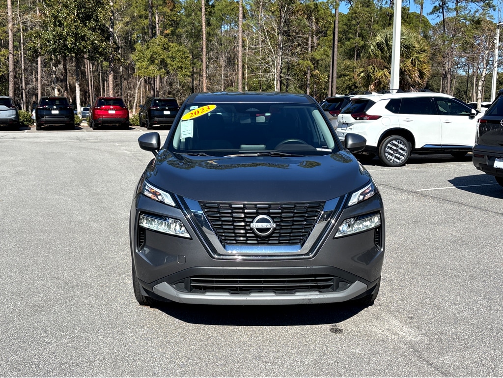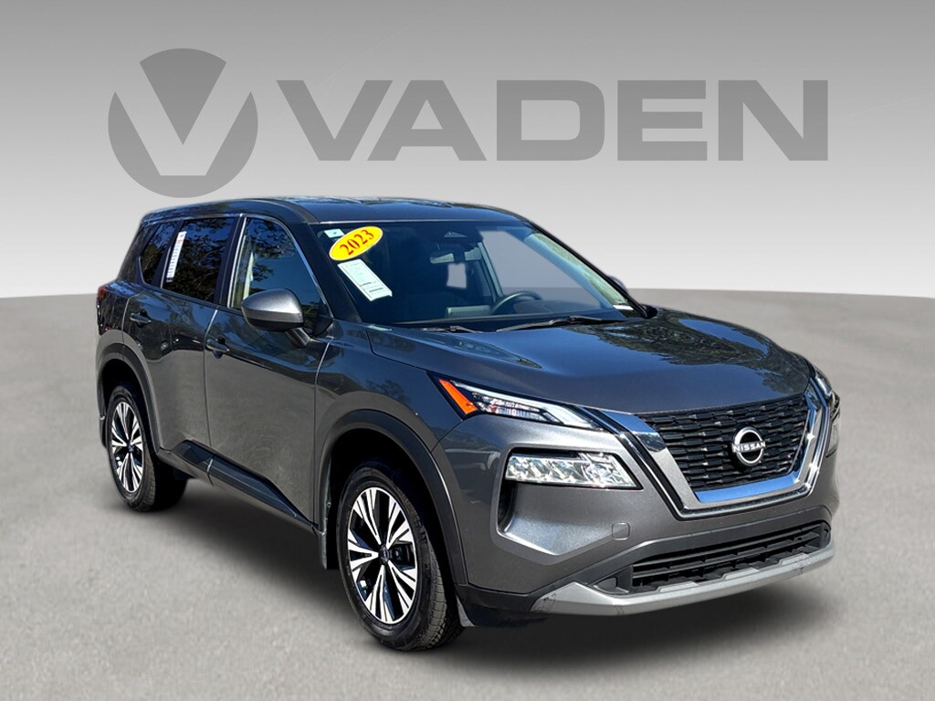 Vaden is pleased to offer 2023 Nissan Rogue SV in Gun Metallic, Beautifully equipped with all the essentials and then some! AWD, 18" Aluminum Alloy Wheels, 4-Wheel Disc Brakes, 5.604 Axle Ratio, 6 Speakers, ABS brakes, Air Conditioning, Alloy wheels, AM/FM Radio, AM/FM radio: SiriusXM, Auto High-beam Headlights, Automatic temperature control, Black Splash Guards (Set of 4), Brake assist, Bumpers: body-color, Cloth Seat Trim, Delay-off headlights, Driver door bin, Driver vanity mirror, Dual front impact airbags, Dual front side impact airbags, Electronic Stability Control, Emergency communication system: NissanConnect Services, First Aid Kit, Floor Mats w/1-Piece Cargo Area Protector, Four wheel independent suspension, Front anti-roll bar, Front Bucket Seats, Front Center Armrest, Front dual zone A/C, Front reading lights, Fully automatic headlights, Heated door mirrors, Illuminated entry, Knee airbag, Low tire pressure warning, NissanConnect featuring Apple CarPlay and Android Auto, Occupant sensing airbag, Outside temperature display, Overhead airbag, Overhead console, Panic alarm, Passenger door bin, Passenger vanity mirror, Power door mirrors, Power driver seat, Power steering, Power windows, Radio data system, Rear anti-roll bar, Rear Parking Sensors, Rear seat center armrest, Rear side impact airbag, Rear window defroster, Rear window wiper, Remote keyless entry, Speed control, Speed-Sensitive Wipers, Split folding rear seat, Spoiler, Steering wheel mounted audio controls, Tachometer, Telescoping steering wheel, Tilt steering wheel, Traction control, Trip computer, and Variably intermittent wipers. AWD.