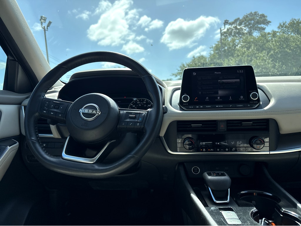 Thank you for checking out our great selection of quality pre-owned vehicles at Vaden Nissan of Savannah. Please contact us at 912-920-2935 for your priority appointment boarding pass today! Vaden Nissan of Savannah is going to impress you with the entire buying process, because thatâs the Vaden way! Check out this 2023 Nissan Rogue SV in Super Black nicely equipped with REMAINDER OF FACTORY WARRANTY, CLEAN CARFAX HISTORY, PUSH BUTTON STARTER, REMOTE KEYLESS ENTRY, BLUETOOTH, REMOTE START, BACKUP CAMERA, SUNROOF/MOONROOF, LEATHER SEATS, POWER MIRROR PACKAGE, HEATED SEATS, and PREMIUM WHEELS SV Premium B Package (Heated Driver & Front Passenger Seats, Heated Leather Wrapped Steering Wheel, Leatherette Door Trim Inserts w/Stitch, Panoramic Moonroof, Power Liftgate, PRIMATEX Leatherette Seat Trim, Rear Door Sunshades, Rear Personal Lights, Security Alarm, and Silver Painted Roof Rails), 18" Aluminum Alloy Wheels, 4-Wheel Disc Brakes, 5.604 Axle Ratio, 6 Speakers, ABS brakes, Air Conditioning, Alloy wheels, AM/FM Radio, AM/FM radio: SiriusXM, Auto High-beam Headlights, Automatic temperature control, Black Splash Guards (Set of 4), Brake assist, Bumpers: body-color, Chrome Rear Bumper Protector, Cloth Seat Trim, Delay-off headlights, Driver door bin, Driver vanity mirror, Dual front impact airbags, Dual front side impact airbags, Electronic Stability Control, Emergency communication system: NissanConnect Services, Floor Mats w/1-Piece Cargo Area Protector, Four wheel independent suspension, Front anti-roll bar, Front Bucket Seats, Front Center Armrest, Front dual zone A/C, Front reading lights, Fully automatic headlights, Heated door mirrors, Illuminated entry, Knee airbag, Low tire pressure warning, NissanConnect featuring Apple CarPlay and Android Auto, Occupant sensing airbag, Outside temperature display, Overhead airbag, Overhead console, Panic alarm, Passenger door bin, Passenger vanity mirror, Power door mirrors, Power driver seat, Power steering, Power windows, Radio data system, Rear anti-roll bar, Rear Parking Sensors, Rear seat center armrest, Rear side impact airbag, Rear window defroster, Rear window wiper, Remote keyless entry, Speed control, Speed-Sensitive Wipers, Split folding rear seat, Spoiler, Steering wheel mounted audio controls, Tachometer, Telescoping steering wheel, Tilt steering wheel, Traction control, Trip computer, and Variably intermittent wipers.