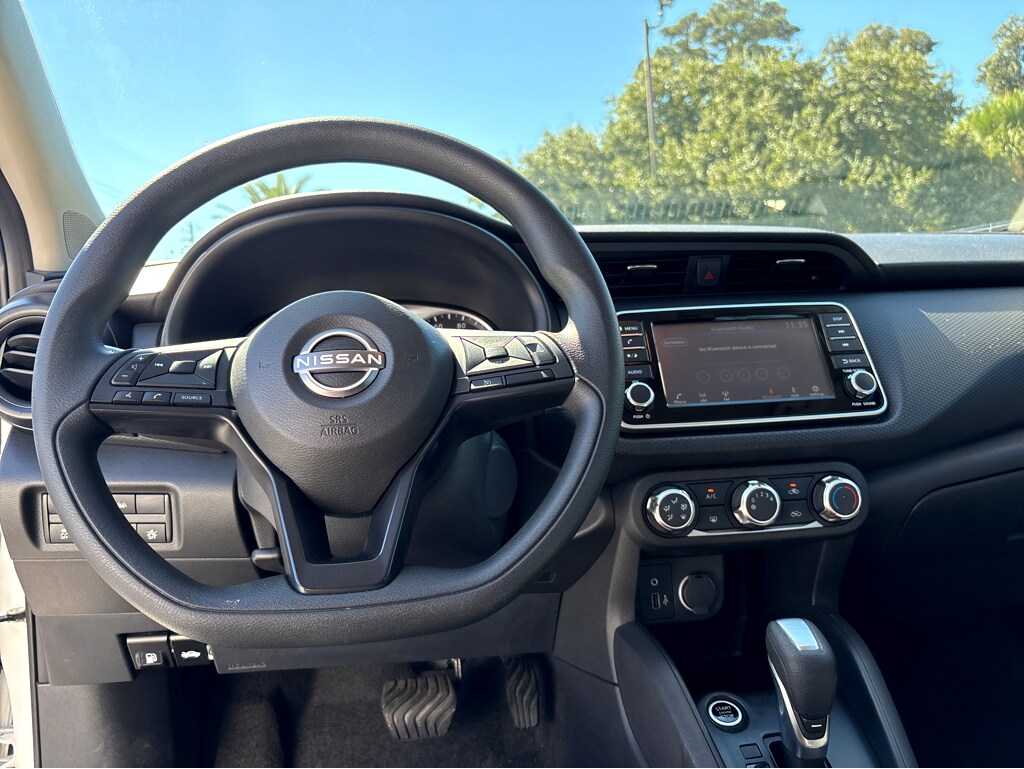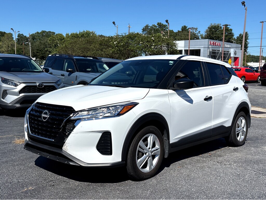 We price our vehicles very aggressively in our local markets of Savannah, Pooler, Richmond Hill, Rincon, Port Wentworth, Thank you for checking out our great selection of quality pre-owned vehicles at Vaden Nissan of Savannah. Please contact us at 912-920-2935 for your priority appointment boarding pass today! Vaden Nissan of Savannah is going to impress you with the entire buying process, because thatâs the Vaden way! Check out this 2024 Nissan Kicks S in Fresh Powder nicely equipped with 16" Steel Wheels w/Full Covers, 3.93 Axle Ratio, 6 Speakers, ABS brakes, Air Conditioning, AM/FM radio, Apple CarPlay/Android Auto, Auto High-beam Headlights, Blind Spot Warning, Brake assist, Bumpers: body-color, Carpeted Floor Mats w/Cargo Mat, Center Armrest w/Storage, Cloth Seat Trim, Driver door bin, Driver vanity mirror, Driver's Seat Mounted Armrest, Dual front impact airbags, Dual front side impact airbags, Electronic Stability Control, Front anti-roll bar, Front Bucket Seats, Front reading lights, Front wheel independent suspension, Fully automatic headlights, Illuminated entry, Knee airbag, Low tire pressure warning, Occupant sensing airbag, Outside temperature display, Overhead airbag, Panic alarm, Passenger door bin, Passenger vanity mirror, Power door mirrors, Power steering, Power windows, Radio data system, Radio: AM/FM Audio System, Rear Parking Sensors, Rear reading lights, Rear side impact airbag, Rear window defroster, Rear window wiper, Remote keyless entry, Speed control, Splash Guards Grain (4 Piece), Split folding rear seat, Sport steering wheel, Steering wheel mounted audio controls, Tachometer, Telescoping steering wheel, Tilt steering wheel, Traction control, Trip computer, and Variably intermittent wipers.