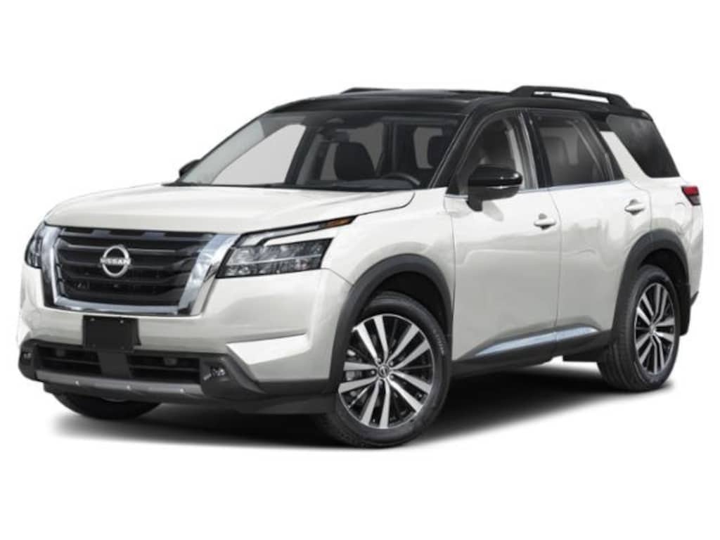 Vaden is pleased to offer 2024 Nissan Pathfinder Platinum in Pearl White Tricoat/Super Black, Beautifully equipped with all the essentials and then some! Cargo Package (Cargo Area Protector, Cargo Net, and First Aid Kit), Platinum Captain Chairs Package (2nd-Row Captain Chairs and 2nd-Row Rear Headrest), Tow Delete Package (Delete Tow Hitch Receiver & Harness), 13 Speakers, 3rd row seats: bench, 4-Wheel Disc Brakes, ABS brakes, Air Conditioning, Alloy wheels, AM/FM radio: SiriusXM, Auto High-beam Headlights, Auto tilt-away steering wheel, Auto-dimming Rear-View mirror, Automatic temperature control, Axle Ratio: 4.334, Black Splash Guards (Set of 4), Bodyside moldings, Bose Premium Audio System, Brake assist, Bumpers: body-color, Captain's Chairs Carpeted Floor Mats (Set of 4), Cross Bars, Delay-off headlights, Driver door bin, Driver vanity mirror, Dual front impact airbags, Dual front side impact airbags, Electronic Stability Control, Emergency communication system, Exterior Parking Camera Rear, Four wheel independent suspension, Front anti-roll bar, Front Bucket Seats, Front Center Armrest, Front dual zone A/C, Front reading lights, Fully automatic headlights, Garage door transmitter: HomeLink, Heads-Up Display, Heated & Cooled Front Bucket Seats, Heated door mirrors, Heated front seats, Heated rear seats, Heated steering wheel, Illuminated entry, Knee airbag, Leather steering wheel, Low tire pressure warning, Memory seat, Navigation system: NissanConnect with Navigation and Services, NissanConnect featuring Apple CarPlay and Android Auto, NissanConnect w/Navigation & Services, Occupant sensing airbag, Outside temperature display, Overhead airbag, Overhead console, Panic alarm, Passenger door bin, Passenger vanity mirror, Power door mirrors, Power driver seat, Power Liftgate, Power moonroof, Power passenger seat, Power steering, Power windows, Prem Paint & 2-Tone Roof - Pearl White Tricoat, Radio data system, Radio: AM/FM Audio System, Rain sensing wipers, Rear air conditioning, Rear anti-roll bar, Rear reading lights, Rear seat center armrest, Rear side impact airbag, Rear window defroster, Rear window wiper, Reclining 3rd row seat, Remote keyless entry, Security system, Semi-Aniline Leather-Appointed Seating Surfaces, Speed control, Speed-sensing steering, Speed-Sensitive Wipers, Split folding rear seat, Spoiler, Steering wheel memory, Steering wheel mounted audio controls, Tachometer, Telescoping steering wheel, Tilt steering wheel, Traction control, Trip computer, Turn signal indicator mirrors, Variably intermittent wipers, Ventilated front seats, and Wheels: 20" x 8J Machined Alloy.