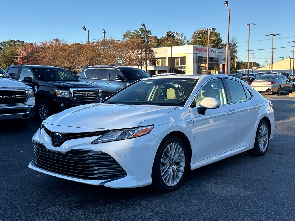 Vaden is pleased to offer this Wind Chill Pearl 2019 Toyota Camry Hybrid with Macadamia ... Beautifully equipped with 2.5L I4 Hybrid DOHC, Radio: Entune 3.0 Audio Plus w/JBL Audio, 4-Wheel Disc Brakes, 6 Speakers, ABS brakes, Air Conditioning, Alloy wheels, AM/FM radio: SiriusXM, Auto High-beam Headlights, Auto-dimming Rear-View mirror, Automatic temperature control, Brake assist, Bumpers: body-color, CD player, Compass, Delay-off headlights, Driver door bin, Driver vanity mirror, Dual front impact airbags, Dual front side impact airbags, Electronic Stability Control, Emergency communication system: Safety Connect, Exterior Parking Camera Rear, Four wheel independent suspension, Front anti-roll bar, Front Bucket Seats, Front Center Armrest, Front dual zone A/C, Front reading lights, Fully automatic headlights, Garage door transmitter: HomeLink, Heads-Up Display, Heated door mirrors, Heated front seats, Illuminated entry, Knee airbag, Leather Shift Knob, Low tire pressure warning, Multi-Stage Heated Front Bucket Seats, Occupant sensing airbag, Outside temperature display, Overhead airbag, Overhead console, Panic alarm, Passenger door bin, Passenger vanity mirror, Power door mirrors, Power driver seat, Power passenger seat, Power steering, Power windows, Quilted Perforated Leather Seat Trim, Radio data system, Rear anti-roll bar, Rear reading lights, Rear seat center armrest, Rear side impact airbag, Rear window defroster, Remote keyless entry, Security system, Speed control, Speed-sensing steering, Split folding rear seat, Steering wheel mounted audio controls, Telescoping steering wheel, Tilt steering wheel, Traction control, Trip computer, Turn signal indicator mirrors, Variably intermittent wipers, and Wheels: 8.0J x 18" Chrome Machined-Finish Alloy! ONE OWNER, CLEAN CARFAX HISTORY, PUSH BUTTON STARTER, REMOTE KEYLESS ENTRY, BLUETOOTH, REMOTE START, BACKUP CAMERA, NAVIGATION SYSTEM NAV GPS, SUNROOF/MOONROOF, LEATHER SEATS, POWER MIRROR PACKAGE, HEATED SEATS, PREMIUM WHEELS, 2.5L I4 Hybrid DOHC, Radio: Entune 3.0 Audio Plus w/JBL Audio.